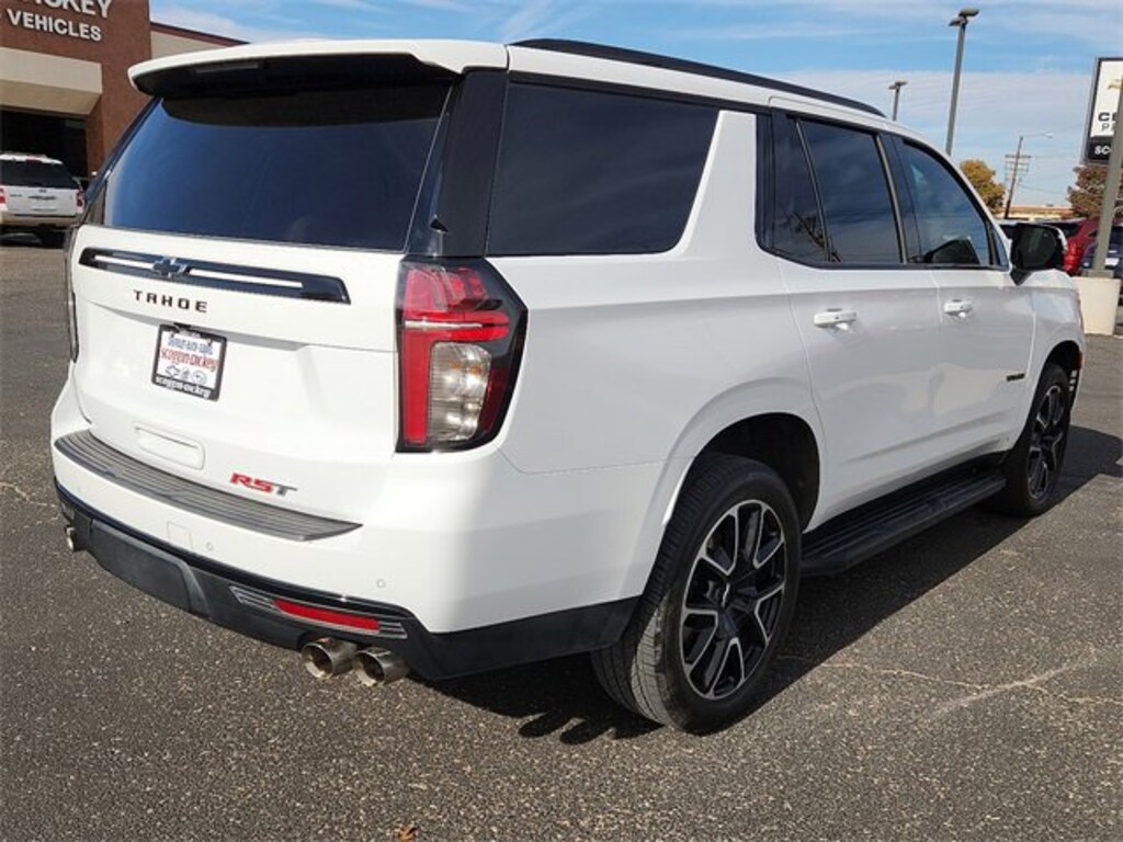 CARFAX One-Owner. Certified. Summit White 2023 Chevrolet Tahoe RST 4WD 10-Speed Automatic with Overdrive EcoTec3 6.2L V8 4WD, Jet Black/Victory Red Leather, 1st & 2nd Row Color-Keyed Carpeted Floor Mats, 2nd Row Pwr Release 60/40 Split-Folding Bench Seat, 3rd Row 60/40 Power-Folding Split-Bench Seat, Adaptive Cruise Control, Auto-Dimming Inside Rear-View Mirror, Bose 9-Speaker Stereo Audio System Feature, Bright Front & Rear Door Sill Plates, Color-Keyed Carpeting Floor Covering, Driver & Front Outboard Passenger Airbags, Driver Alert Package, Dual Exhaust System, Enhanced Automatic Emergency Braking, Enhanced Driver Information Center, Floor Console w/Storage Area, Hands-Free Rear Power Programmable Liftgate, HD Surround Vision, Heated 2nd Row Outboard Seats, Heated Steering Wheel, Infotainment Display, Lane Change Alert w/Side Blind Zone Alert, LED Daytime Running Lamps, Luxury Package, Magnetic Ride Control Suspension, Memory Settings, Memory Settings for Driver, Navigation System, Outside Heated Power-Adjustable Mirrors, Power Tilt & Telescopic Steering Column, Preferred Equipment Group 1SP, Rear Cross Traffic Alert, Rear Pedestrian Alert, Remote Start, SiriusXM Radio w/360L, Sport Performance Package, Universal Home Remote, Wireless Charging, Wrapped Steering Wheel.Recent Arrival! Odometer is 9142 miles below market average!Chevrolet Certified Pre-Owned Details:* Powertrain Limited Warranty: 72 Month/100,000 Mile (whichever comes first) from original in-service date* 24 months/24,000 miles (whichever comes first) Certified Pre-Owned Scheduled Maintenance Plan and 3 days/150 miles (whichever comes first) Vehicle Exchange Program. SiriusXM 3-month trial subscription.* Transferable Warranty* Limited Warranty: 12 Month/12,000 Mile (whichever comes first) from certified purchase date* Roadside Assistance* Vehicle History* 172 Point Inspection* Warranty Deductible: $0